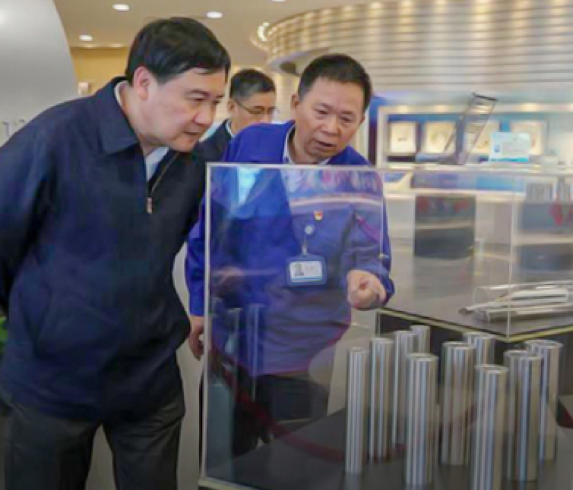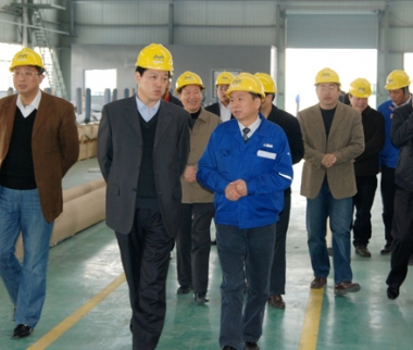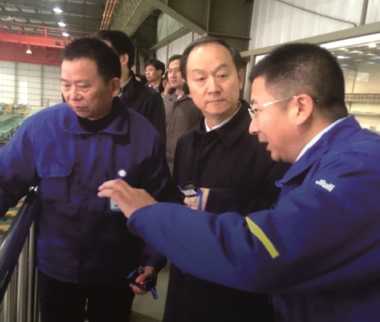2007年2月,時任浙江省原副省長金德水(左二)視察久立生產現場